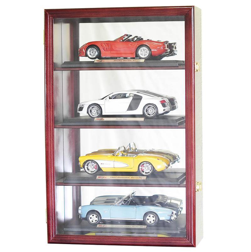 Display them in this beautiful Small 1/18 Scale Diecast Display Case Cabinet, designed with 4 rows to showcase 4 of your favorite 1/18 scale diecast cars.