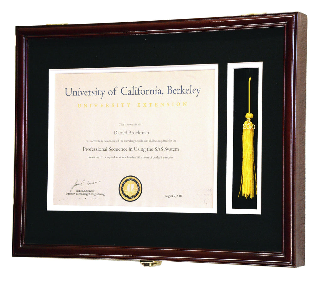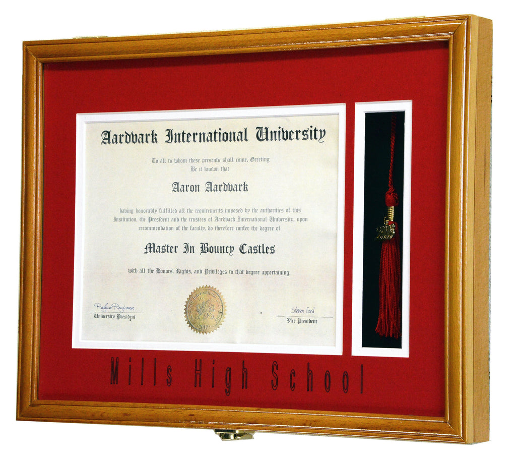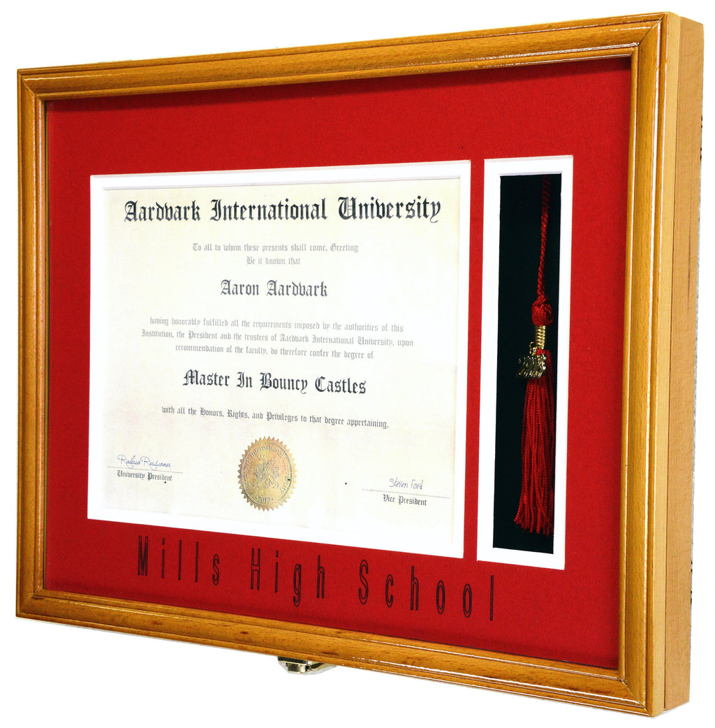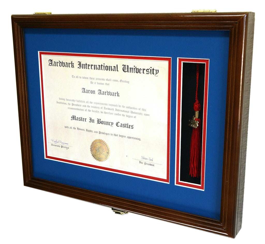 Diploma and Graduation Tassel Display Case Cabinet (w/ Custom Matting Colors)