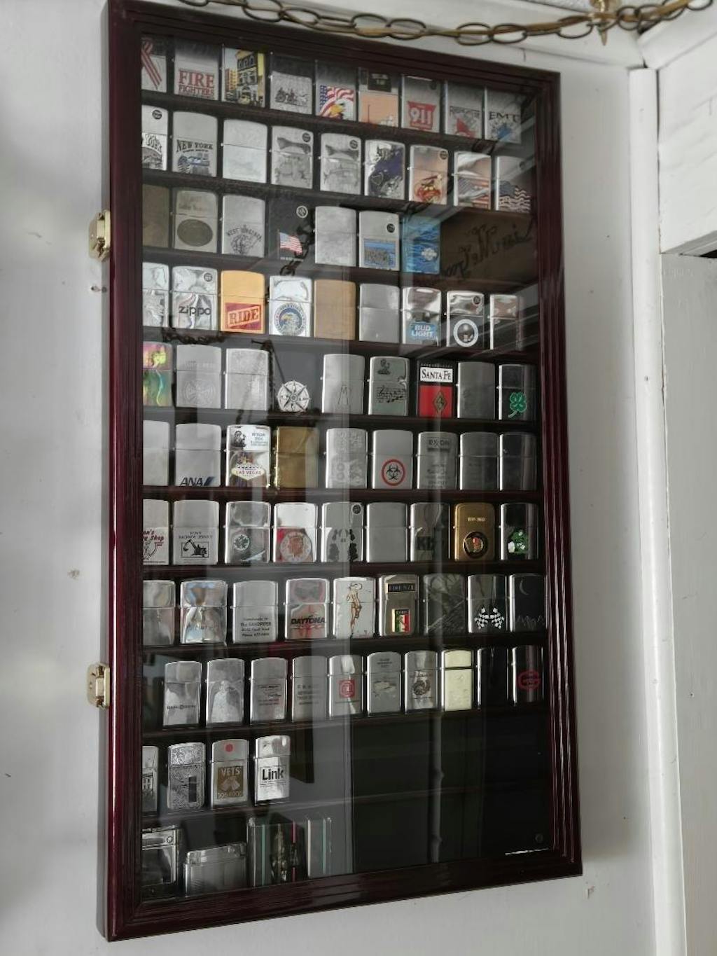 Beautiful case. Brackets were on the bottom but I was able to take care of it. Looks great with my Zippo collection. Thank you. Mike